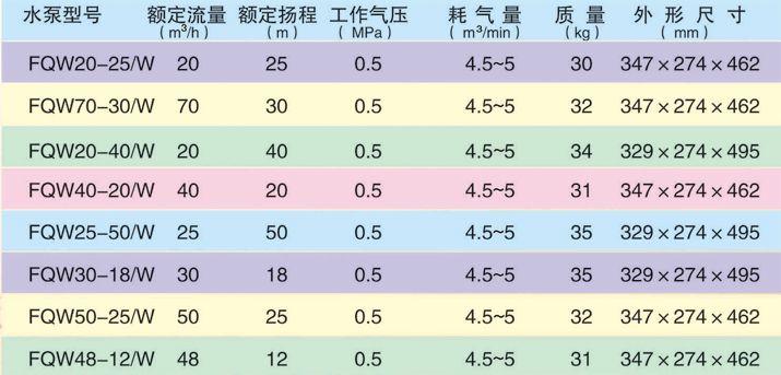 FQW型礦用風動潛水泵(原BQF、FWQB型)是我公司自行研制開發(fā)的一種新產品,本產品采用轉子與泵體同軸聯(lián)結的機械產品,采用立式機構、下泵式。執(zhí)行標準:Q/JNAT001-2010。煤礦用風動潛水泵結構緊湊,移動、裝拆、維修方便。泵體渦道采用節(jié)能水力模型,葉輪特殊設計。該水泵具有排污水能力強,流量大,揚程高等優(yōu)點。FQW型系列水泵適用于含有瓦斯與煤塵爆炸危險場所排水作業(yè),可廣泛用于煤礦井下任何作業(yè)面,輸送含有煤粉,泥沙顆粒的地下水,使用安全、可靠,并有效地改善現(xiàn)場空氣質量。